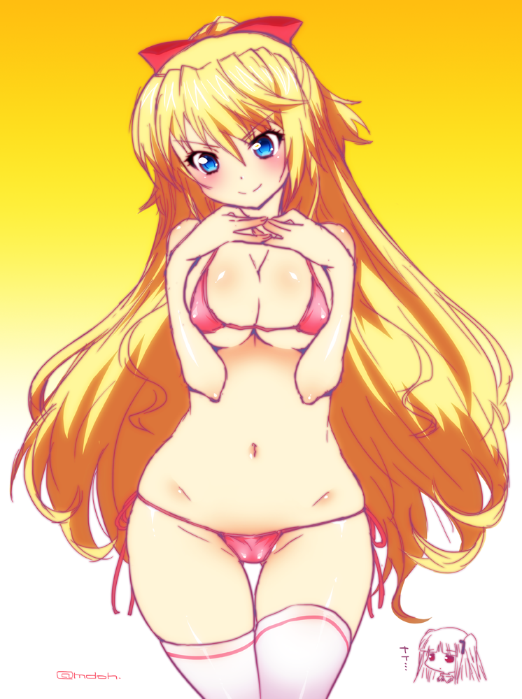 2girlsbikiniblonde hairblue eyesblushbreastscleavagefemaleFlag for Deletiongradientgradient backgroundhairhair ribbonhumanlong hairmicro bikininavelpink bikiniside-tie bikinismilesolo focusswimsuitthigh gapthighhighsvery long hairwhite legwearwide hips