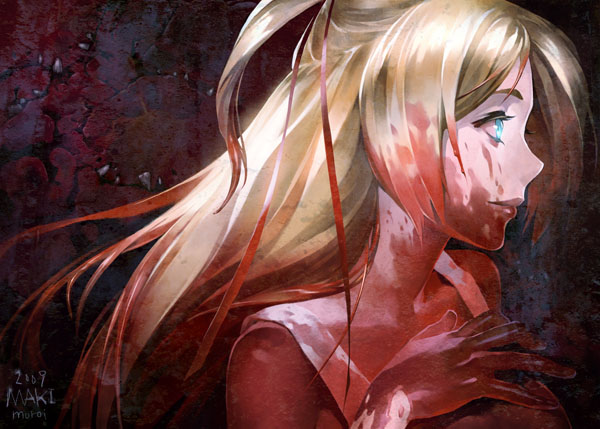 aira saunar, assassin cross (ragnarok online), ragnarok online, commentary, english commentary, highres, 1girl, black leotard, blood, blood on face, breasts, brown background, expressionless, green eyes, hair between eyes, leotard, lips, long hair, looking at viewer, medium breasts, solo, upper body, white hair