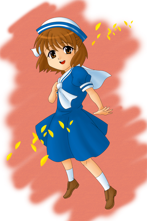 00s1girlascotbrown eyesbrown hairchilddixie cup hatdressfemale focushatjumpingmilitary hatsailorsailor collarshort hairsolo