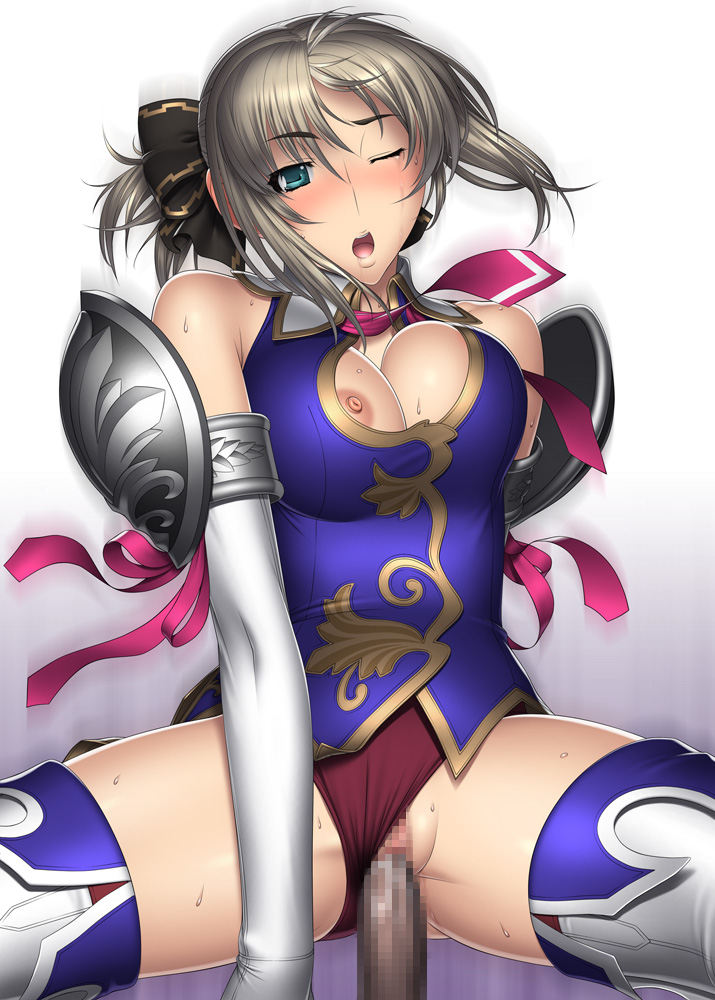 1girlaqua eyesbare shouldersblonde hairblushbowbreastscensoredcleavageclothing asidecowgirl positiondisembodied peniselbow glovesgirl on topglovesgreen eyeshair bowlarge breastsleotardlong hairnecktienipple slipnipplesone eye closedpantiespanties asidepenispink necktieponytailpussysexshoulder padssolo focusstraddlingsweattearsthighhighsunderwearvaginalwink
