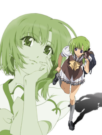 karasuma chitose, galaxy angel, uniform, non-web source, translation request, 00s, 1girl, blue hair, female focus, green eyes, half updo, leaf, long hair, solo, tears