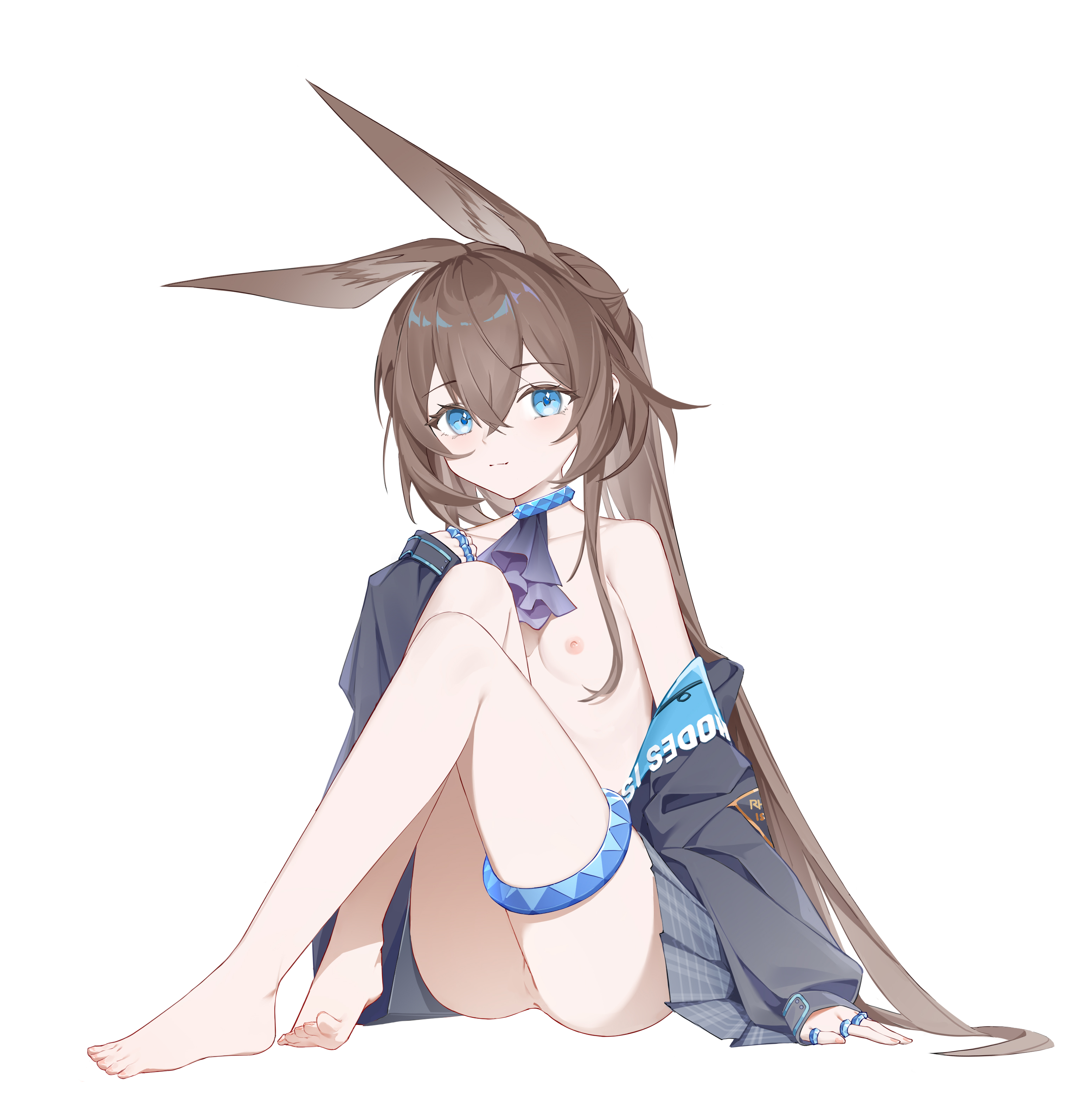 rio (blue archive), blue archive, absurdres, commentary request, highres, 1girl, amck-ism, bare shoulders, blush, breasts, cleavage, completely nude, female masturbation, grabbing own breast, groin, hair ornament, hairclip, halo, large breasts, long hair, looking at viewer, masturbation, nipples, nude, open mouth, red eyes, solo, teeth, tongue, tongue out, very long hair