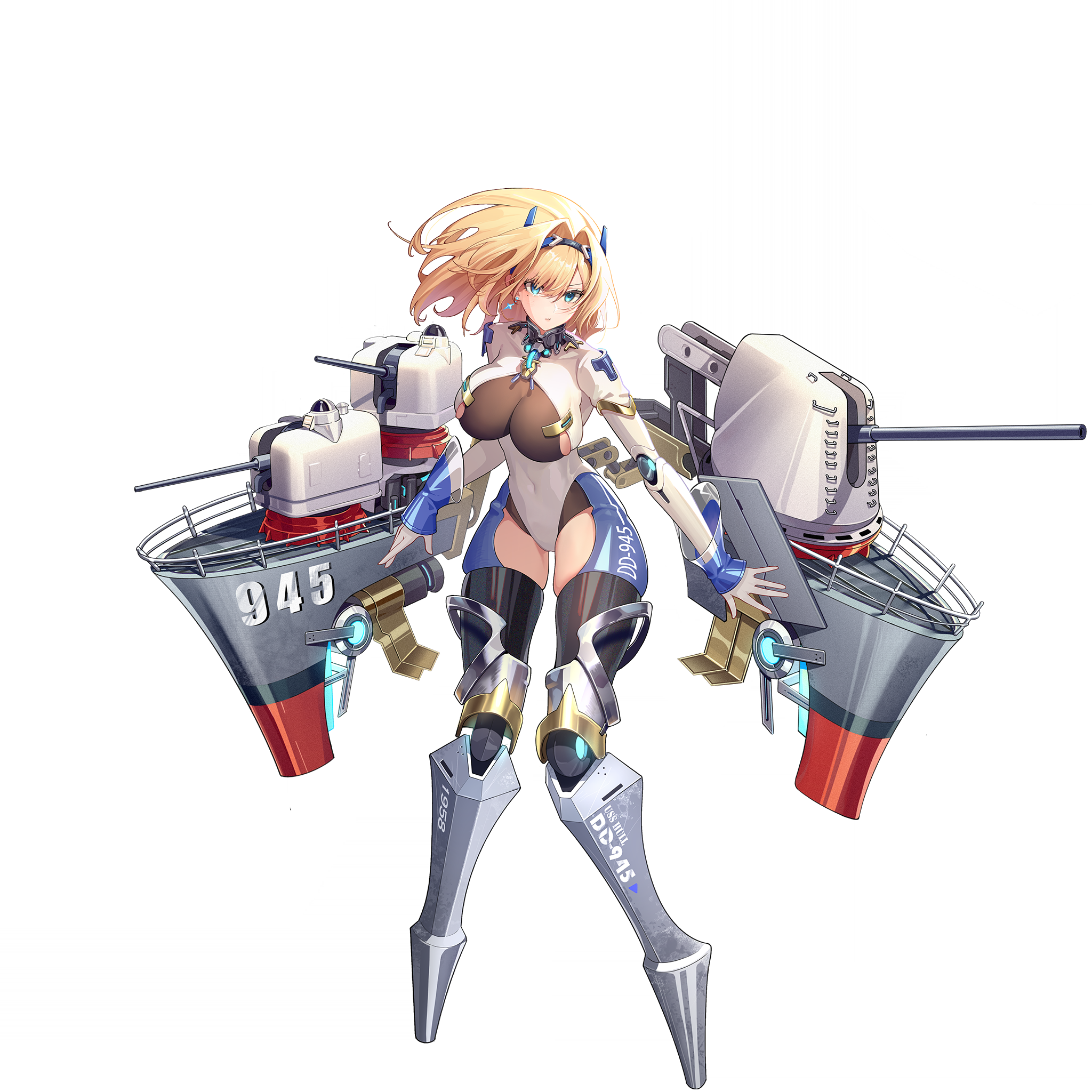 1girlaqua eyesarmored bootsblack leotardblack thighhighsblonde hairbootsbreast cutoutbreastscleavageearringsfull bodyhull (warship girls r)jewelrylarge breastsleotardlong sleevesriggingship turretshort hairsolothighhighstransparent backgroundwhite leotard