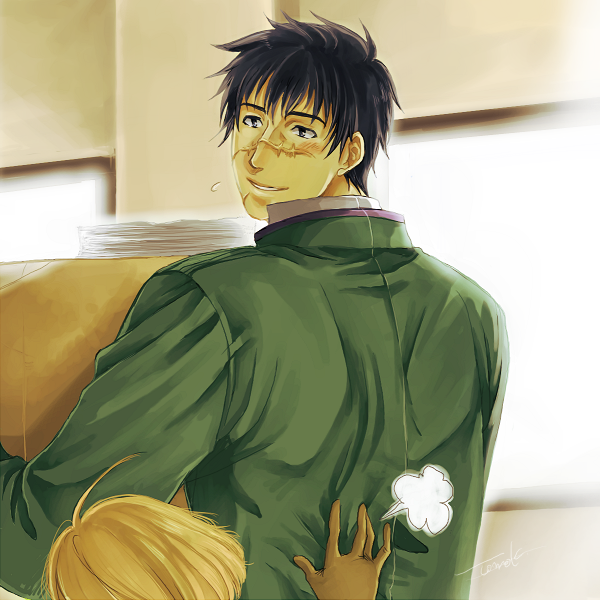00s1boy1girlblonde hairgloveslooking backmilitarymilitary uniformscarscar on facescar on noseshort hair