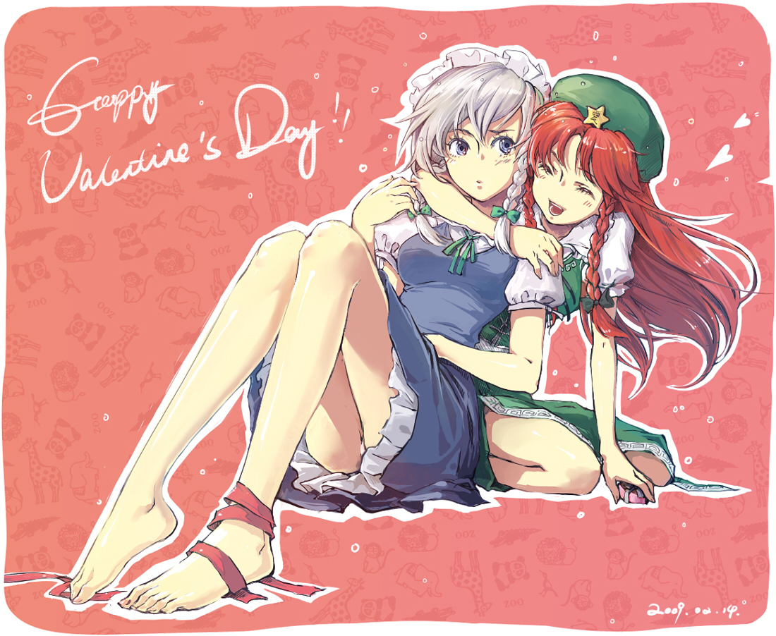 2girlsbarefootbraidfeetfemale focushairbandhappy valentinehathuglong legsmaidmultiple girlspantiespantyshotred hairribbonshort hairtwin braidsunderwearvalentine