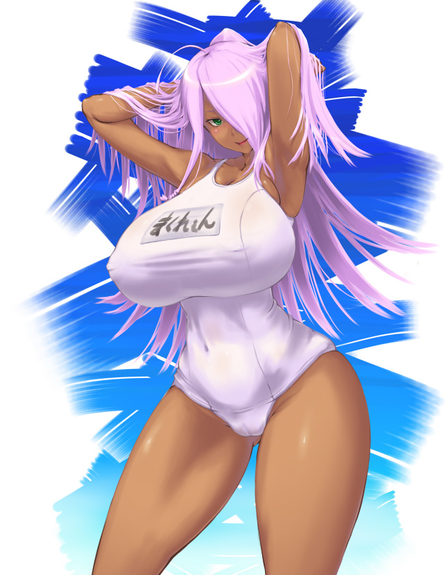 00s1girladjusting hairarmpitsarms upbreastscameltoecurvydark skindark-skinned femalefemale focusgreen eyeshair over one eyehip focushuge breastslarge breastslong hairone-piece swimsuitpink hairsmilesoloswimsuitwhite one-piece swimsuitwide hips
