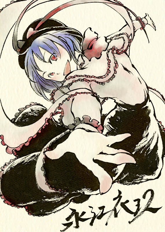 1girlblack hatblue hairfemale focusforeshorteninghathead tiltsimple backgroundsolowhite background