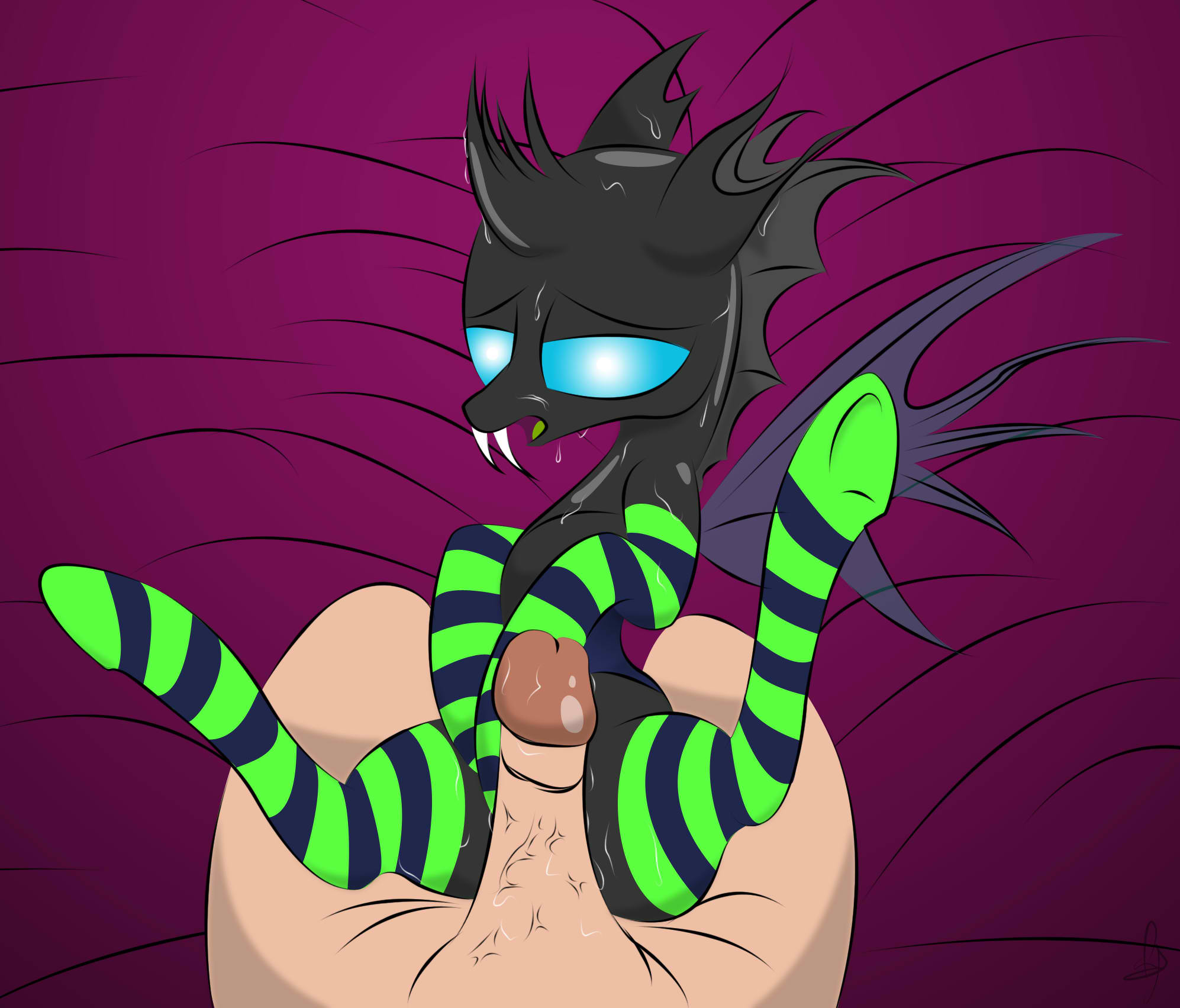 fumio (rsqkr), net venus, net ghost pipopa, breast hold, 00s, 1girl, bare shoulders, breasts, female focus, gloves, grabbing own breast, green hair, long hair, midriff, pointy ears, sleeveless, sleeveless turtleneck, solo, turtleneck