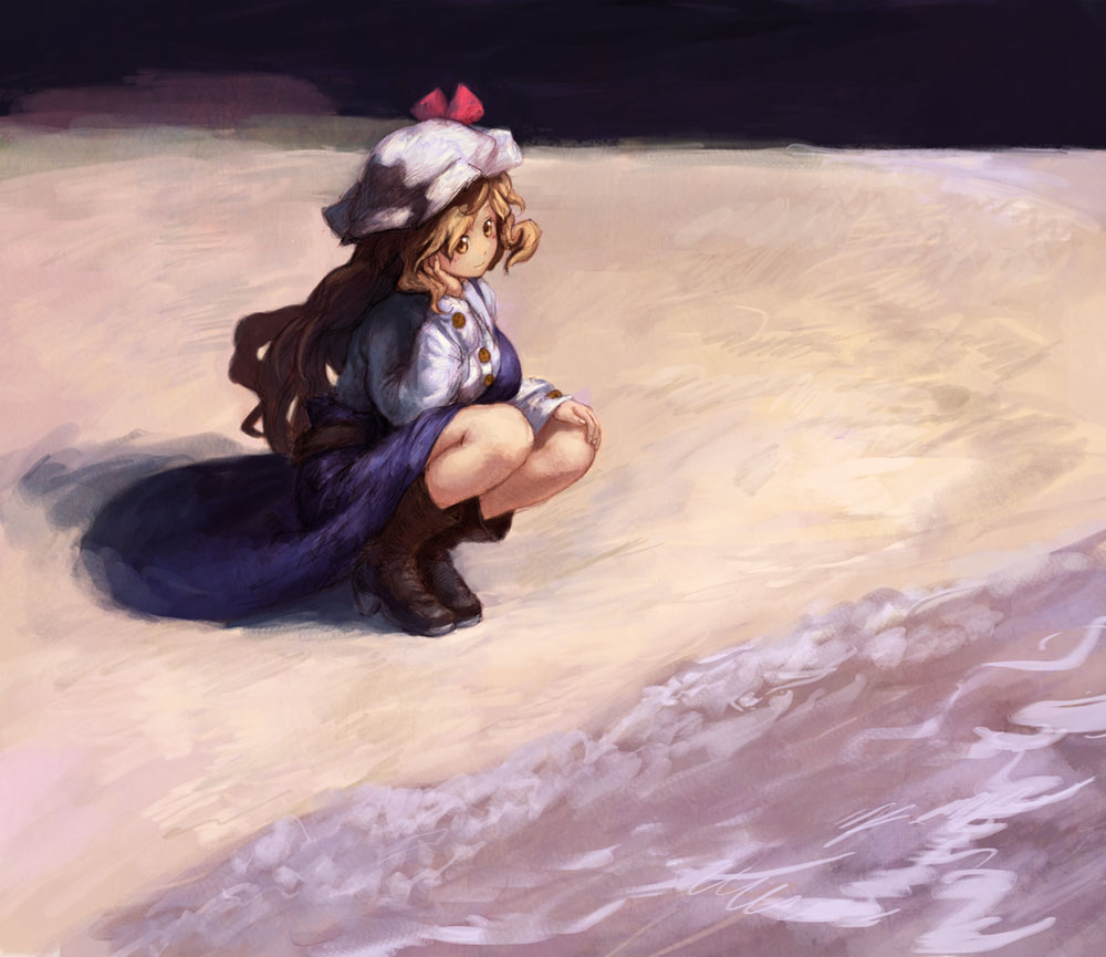 winechii, tartaglia (genshin impact), zhongli (genshin impact), genshin impact, highres, 1boy, 1girl, ahoge, animal ears, black gloves, black hair, blue eyes, blush, cat ears, cat girl, chibi, chibi inset, fish, genderswap, genderswap (mtf), gloves, kemonomimi mode, long hair, orange hair, red scarf, scarf, speech bubble, water