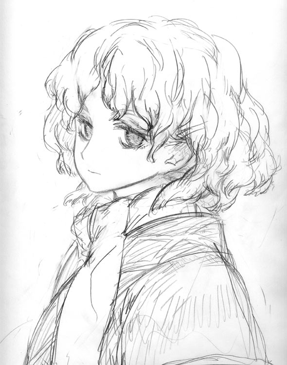 mil (xration), gypsy (ragnarok online), comiket 82, ragnarok online, commentary request, lowres, 1girl, beckoning, breasts, circle cut, circle name, criss-cross halter, curtained hair, forehead jewel, gem, greyscale, grin, halterneck, holding, holding whip, jewelry, looking at viewer, monochrome, necklace, pointy ears, short hair, short twintails, small breasts, smile, solo, twintails, upper body, watermark, web address