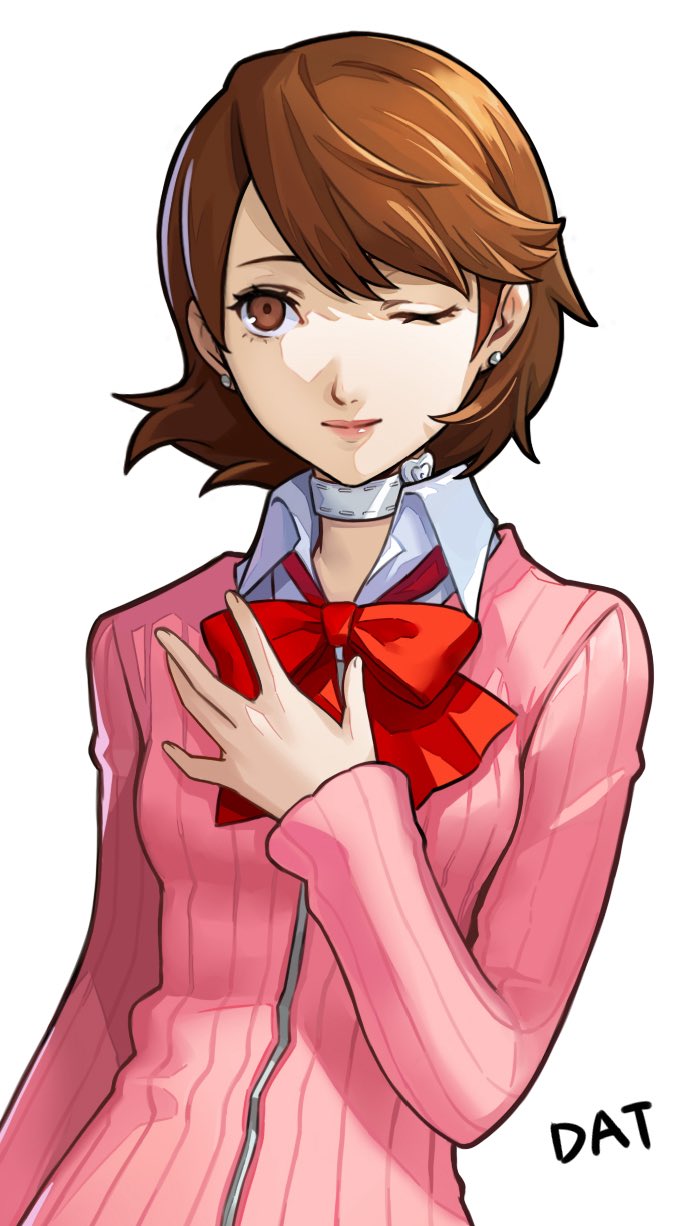 1girlartist namebowbowtiebrown eyesbrown haircardiganchokerclosed mouthcollared shirtearringseyelashesflipped hairgekkoukan high school uniformhand on own chestheartheart chokerjewelrylight smilelipslong sleevesloose bowtieone eye closedpink cardiganpink lipsred bowred bowtieribbed cardiganschool uniformshirtshort hairsimple backgroundsolostud earringsupper bodywhite backgroundwhite chokerwhite shirtzipper