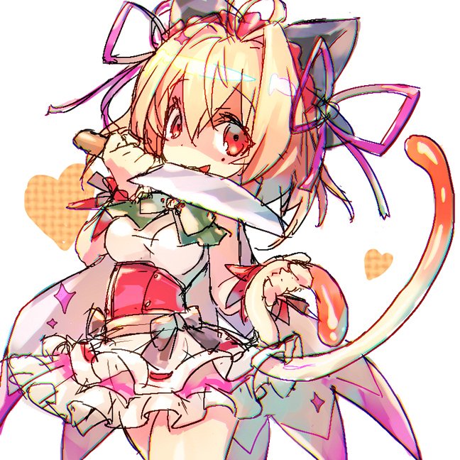 1girlahogeblack ribbonblonde hairbowbowtiecloakcorsetfrilled skirtfrillsgreen bowhair ribbonheartholdingholding knifeholding own tailkitchen knifeknifelooking at viewermolemole under eyemultiple tailspurple ribbonred corsetred eyesred wrist cuffsribbonshirtskirtsolospoken hearttailtentacle almathighswhite backgroundwhite cloakwhite shirtwhite skirtwrist cuffs