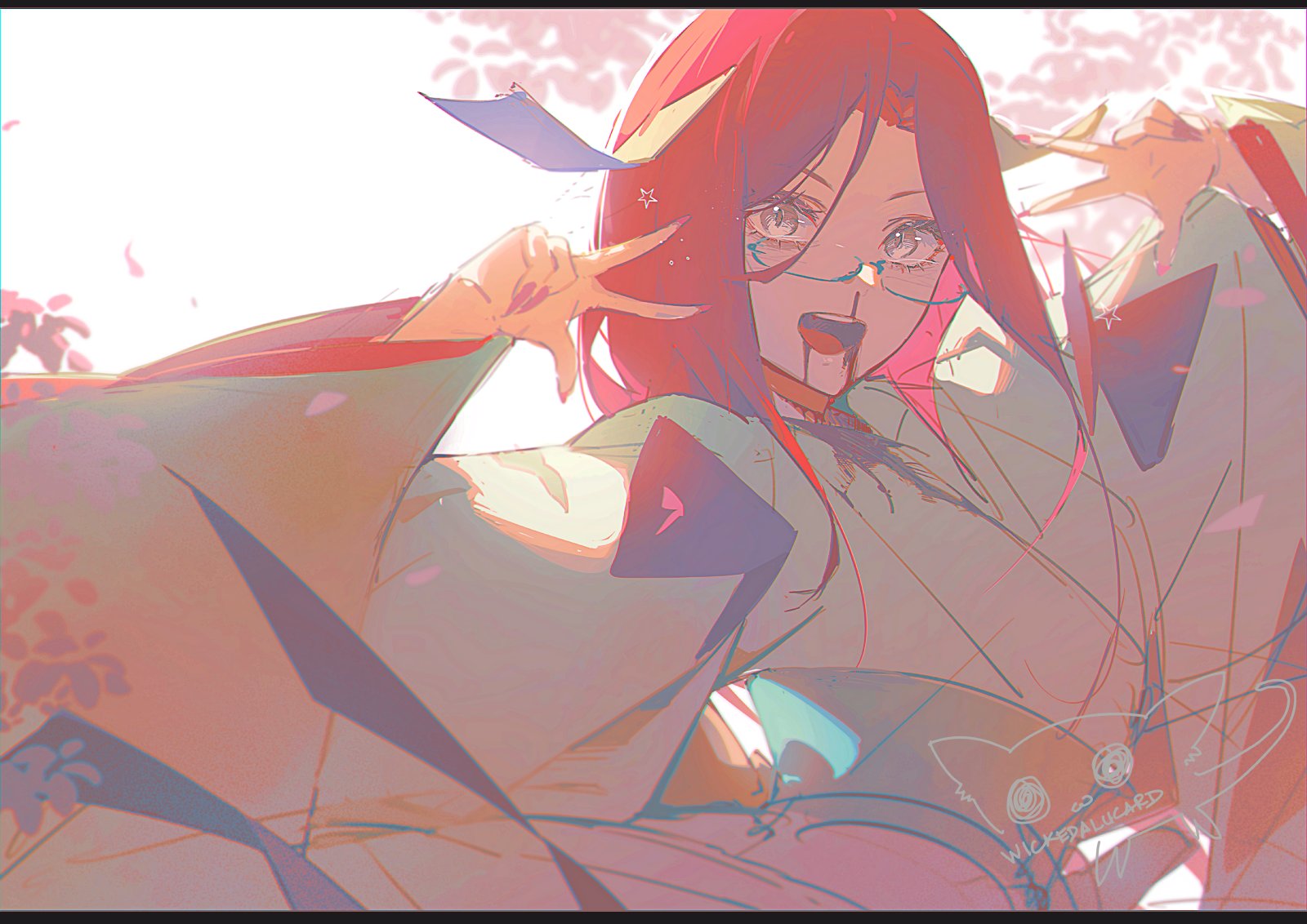 explosion psycho, haguruma hasami (explosion psycho), original, commentary, highres, symbol-only commentary, 1girl, black background, black eyes, black hair, blue sailor collar, half-closed eyes, long sleeves, neckerchief, red neckerchief, sailor collar, school uniform, serafuku, shirt, simple background, solo, tongue, tongue out, twintails, upper body, v, white shirt