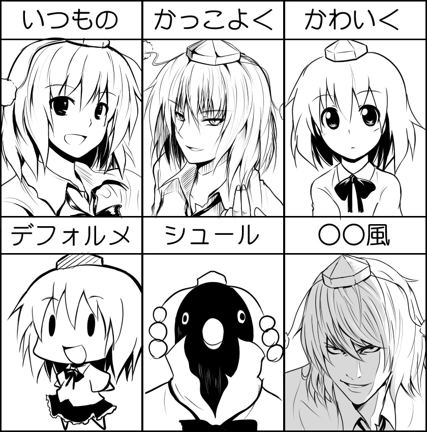 1girlchartchibifemale focusgreyscalehatjust as planned (meme)mememonochromemultiple expressionsparodystyle parodytokin hat