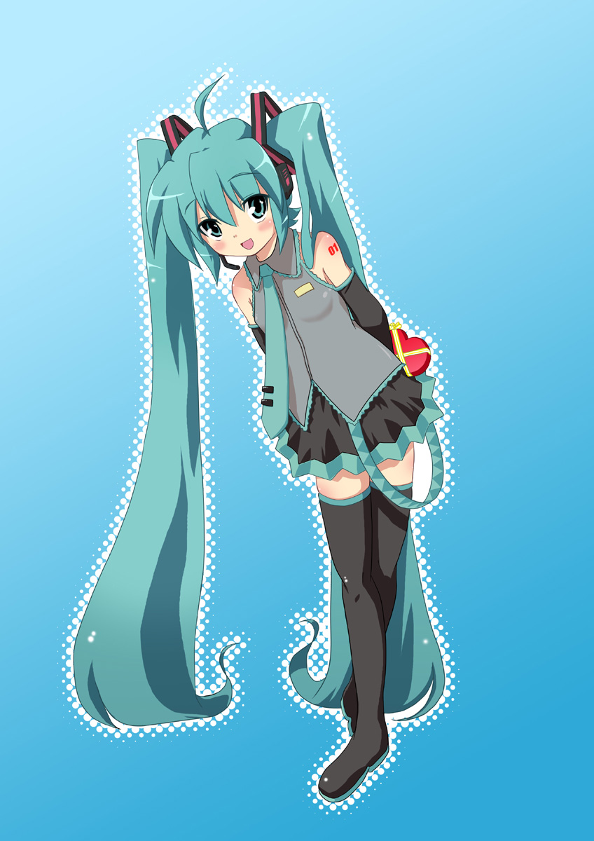 ahogeaqua eyesaqua hairblushheadsetlong hairnecktieskirtsolothighhighstwintailsvalentinevery long hairyokoshima (pixiv110068)zettai ryouiki
