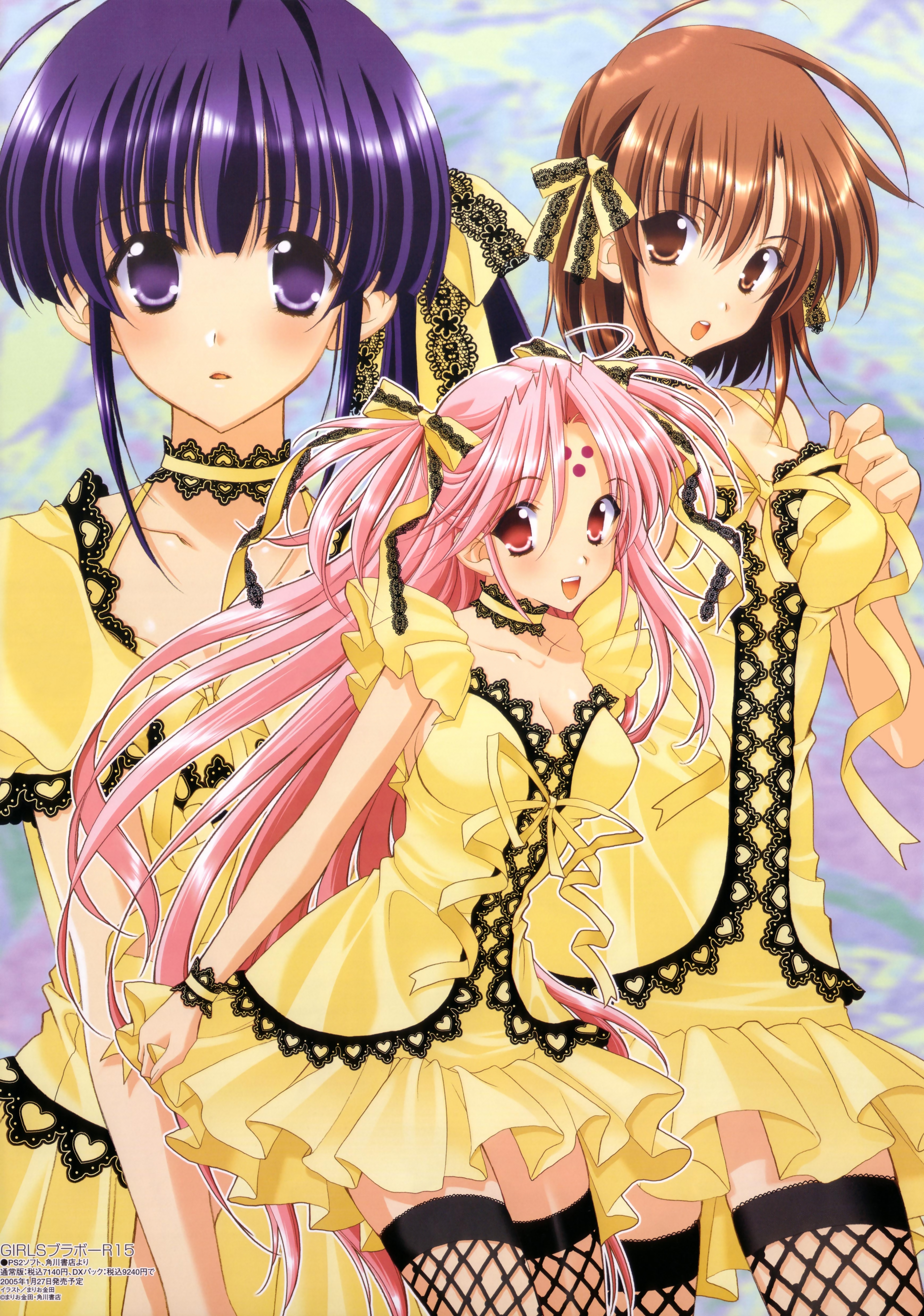 haruyama kazunori, yotsuba satsuki, mahou sensei negima!, 00s, 1girl, breasts, brown eyes, brown hair, female focus, looking at viewer, lying, medium breasts, on back, outdoors, panties, plaid clothes, plaid skirt, plump, ribbon, school uniform, serafuku, skirt, smile, socks, solo, twintails, underwear, upskirt, vest, white panties