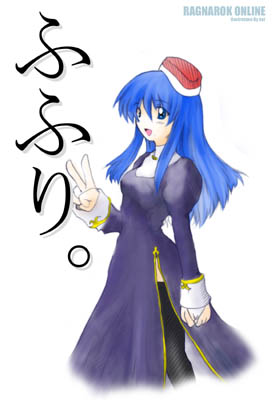 1girl2000s (style)black thighhighsblue eyesblue haircopyright namedresshatjuliet sleeveslong hairlong sleeveslooking at viewerpuffy sleevespurple dressred hatside slitsimple backgroundsolothighhighsvwhite background