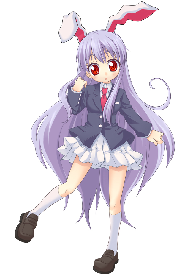 1girlanimal earsfemale focusfull bodylong hairpurple hairrabbit earsred eyessimple backgroundskirtsolowhite background