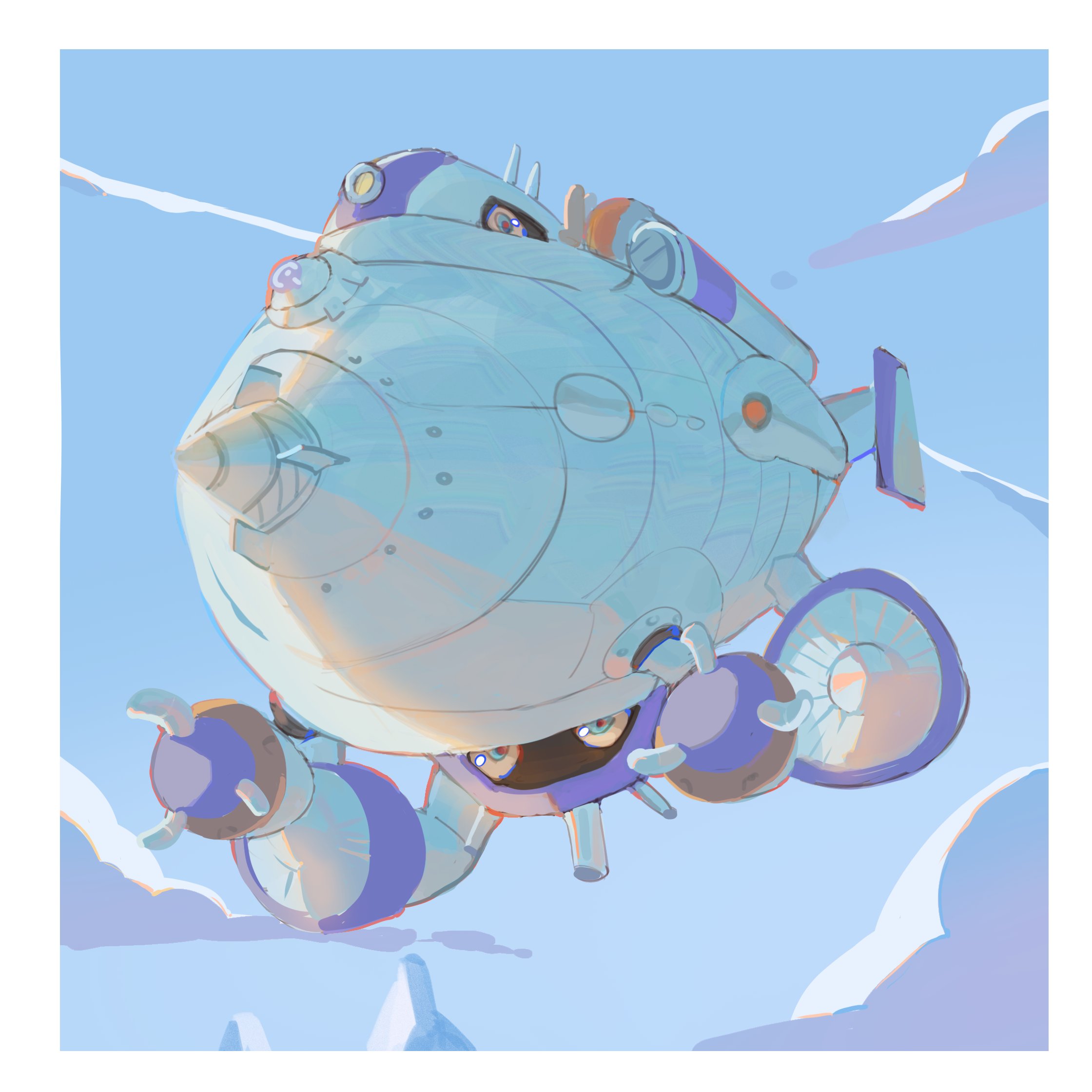 aircraftanimate objectblue eyesborderdigimon (creature)dirigibleextra eyesfull bodymasterblimpmonmidairno humanswhite border