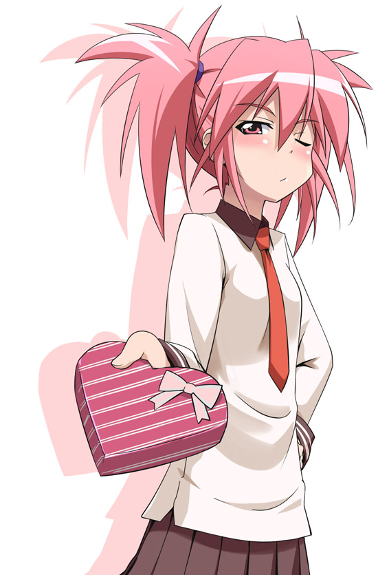 00s1girlblushfemale focusgiftholdingholding giftincoming giftnecktiepink eyespink hairsolotsunderevalentine