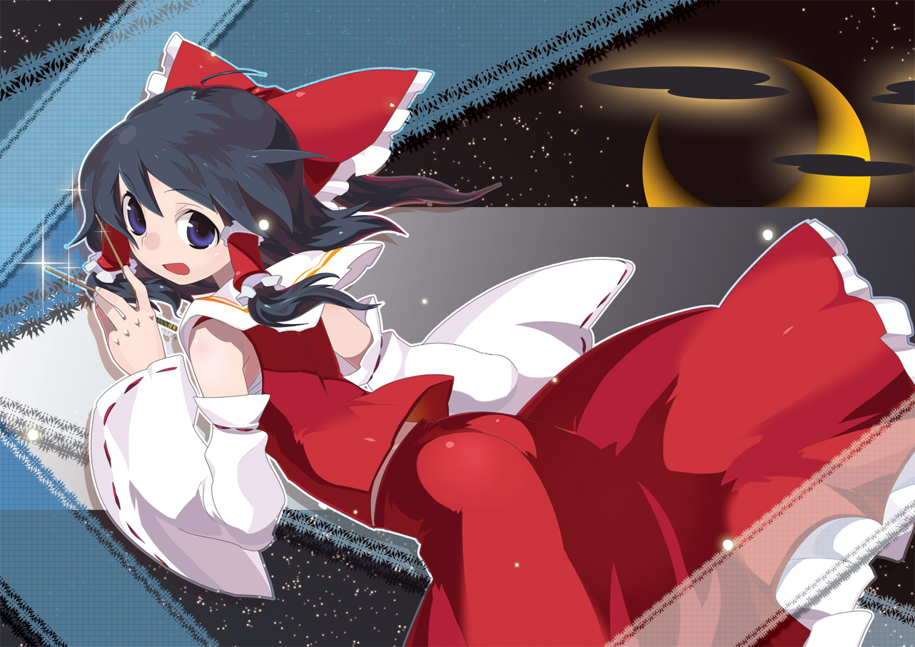 1girlblack hairchopsticksdetached sleevesfemale focushair ribbonjapanese clothesmikoribbonsolo