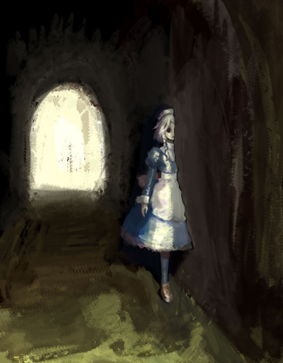 uko (artist), yufushi, original, painting (medium), traditional media, watercolor (medium), 1girl, dog, female focus, full body, japanese clothes, kimono, solo, tabi, umbrella