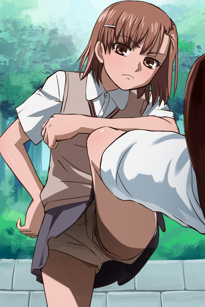 00s1girlblazerbrown eyesbrown hairfemale focusfemale pubic hairhair ornamenthaircliphand on own hipjacketleg uplooking at viewerno pantiesplantpubic hairschool uniformseriousshoesshort hairshortsshorts under skirtskirtsockssolospread legssweater vesttreeupshortsupskirt