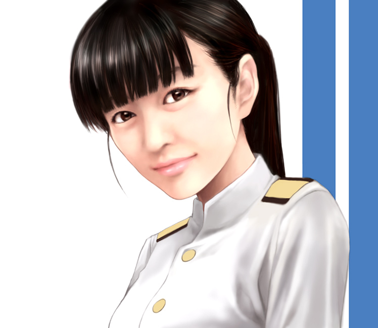 00s1girlblack hairblunt bangsbrown eyesfemale focuslooking at viewermilitarymilitary uniformrealisticsimple backgroundsmilesolowhite background