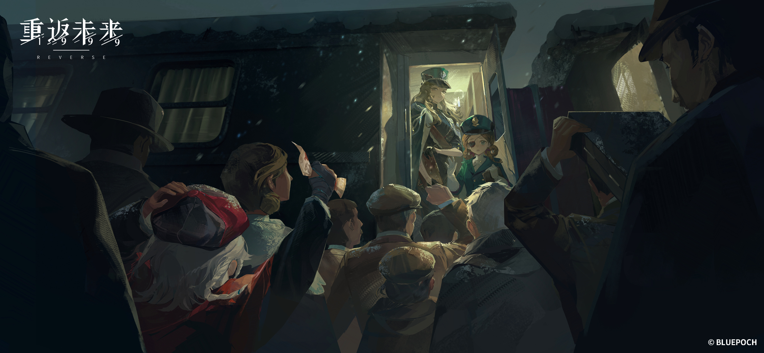 :o3girlsaima (reverse:1999)arms upbacklightingblack coatblack dressblack glovesblue eyesbraidbraided hair ringsbrown eyesbrown hairclipboardcloakcoatcoat on shoulderscopyright namecopyright noticecorvus (reverse:1999)crowddresseyepatchfacing awayfingerless glovesfrom behindglovesgreen hatgreen jacketgrey hairhair ringshand on headwearhands uphatholdingholding clipboardholding ticketjacketlogolong hairlooking at viewermultiple girlsnewsboy capnightnight skyone eye coveredpeaked cappeoplered cloakred sashsashshort hairshoulder sashsingle gloveskysnowingstitched armstitched facestitchestickettraintrain attendanttravel attendantupper bodywhite gloves