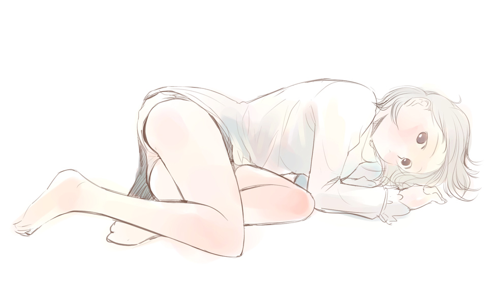 1girlbarefootblushfeetfemale focuslyingno pantson sidepantiespantyshotshort hairsketchsleepysolounderwearwhite hair