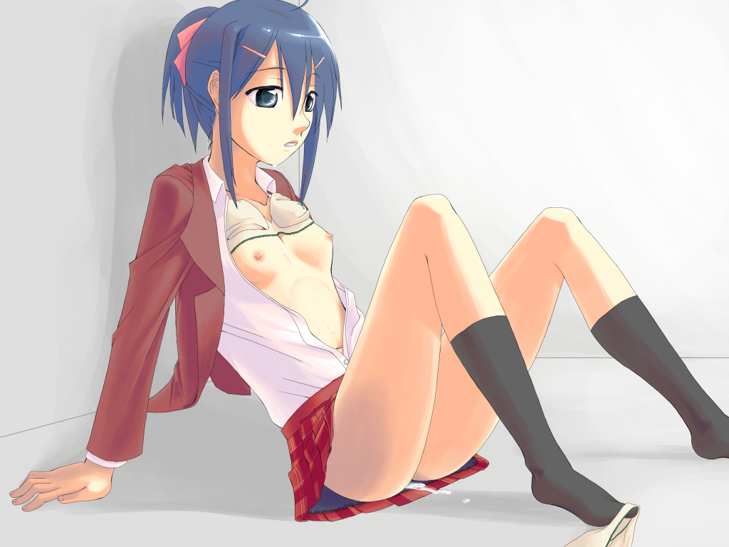 00s1girlaftersexahogearm supportblue eyesblue hairbrabra liftclothes liftcumfemale focusflat chesthair ribbonlingeriematching hair/eyesnipplesopen clothesopen shirtpantiesplaid clothesplaid skirtponytailribbonschool uniformshirtskirtsockssolounderwear