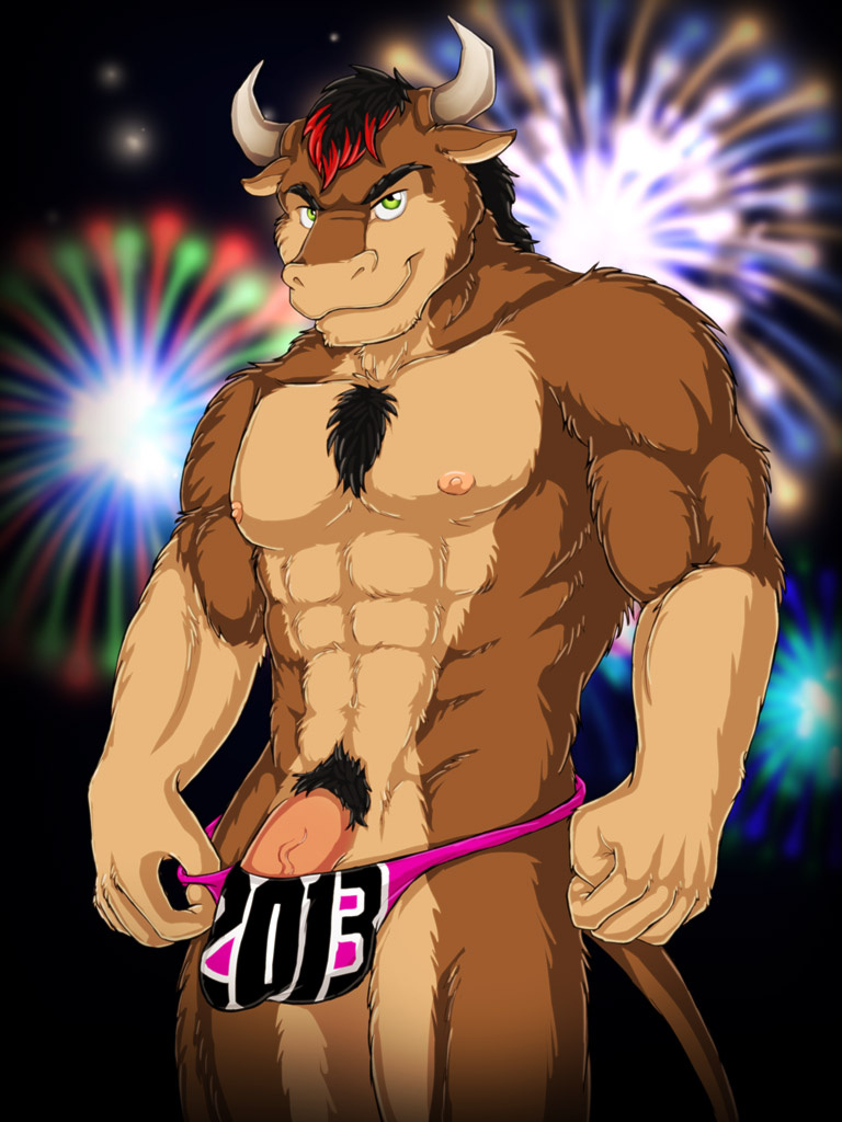 absanthrobicepsblack hairbovinebulgecattlechest tuftFlag for Deletionfurfurrygreen eyeshairlooking at viewermalemale onlymusclespecspenisred hairsolospeedoteasingthongunderwear