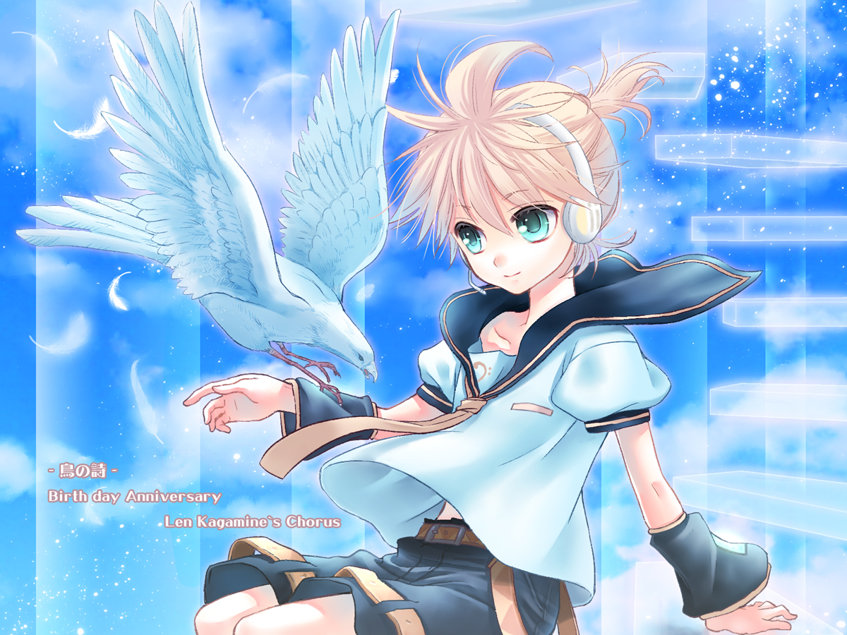 1boyanimal on armbirdbird on armblonde hairblue eyescharacter namedetached sleevesfalling feathersfeathersheadphonesmale focusnecktieshort hairsittingsolowhite bird