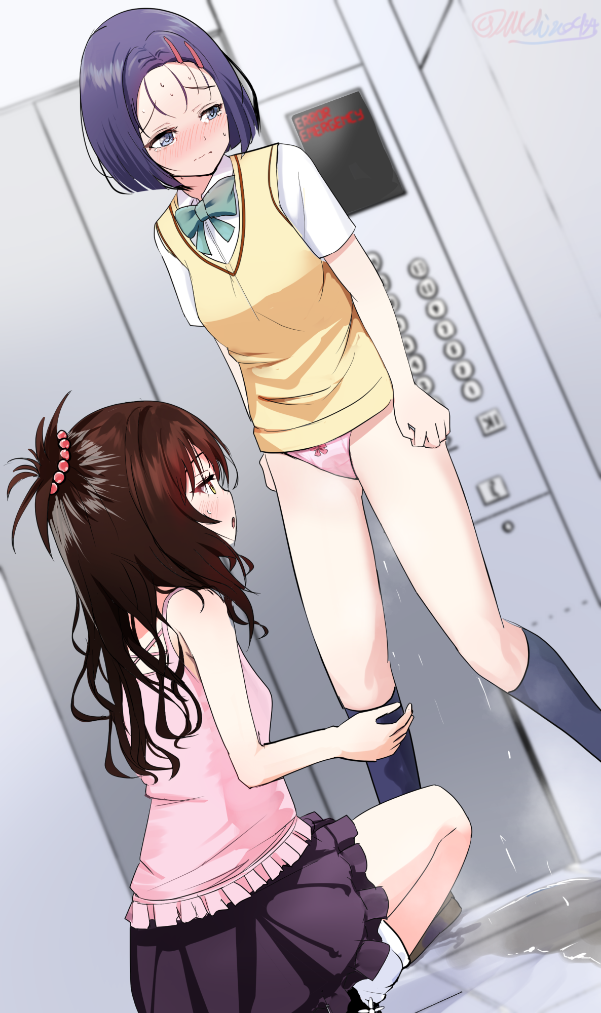 2girlsbeadsblack socksblue bowblue bowtieblue eyesblushbowbow pantiesbowtiebreastsbrown haircamisoleclosed mouthelevatorfrilled skirtfrillshair beadshair ornamenthairclipindoorskneehighslong hairminiskirtmultiple girlsno pantsopen mouthpantiesparallel hairclipspeepeeingpeeing selfpink camisolepink pantiespleated skirtpurple hairpurple skirtsainan high school uniformschool uniformshirtshort hairskirtsmall breastssockssquattingstandingsweater vesttearing uptearsunderwearwavy mouthwhite shirtwhite socksyellow eyesyellow sweater vest