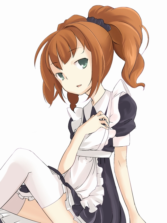 00s1girlapronbrown hairfemale focusgreen eyesmaidmaid apronsimple backgroundskirtsolothighhighstwintails