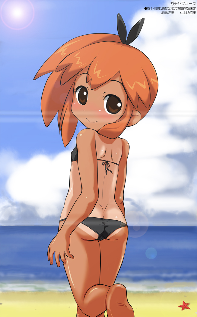 1girlarms at sidesartist nameassbackbarefootbeachbikiniblack bikiniblack ribbonblurryblurry backgroundblushbrown eyesbutt crackcameltoeclosed mouthcloudcopyright namecovered erect nipplescreasedaydepth of fielddimples of venusfemale focusflat chestfrom behindhair ribbonleg uplens flarelight smilelolilong hairlooking at viewerlooking backoceanone-piece tanorange hairoutdoorsparodyparted bangsribbonshiny skinshoulder bladesside ponytailsidelocksskysmilesolessolostandingstanding on one legstarfishstring bikinisunswimsuittantanlinetaut bikinitaut clotheswater