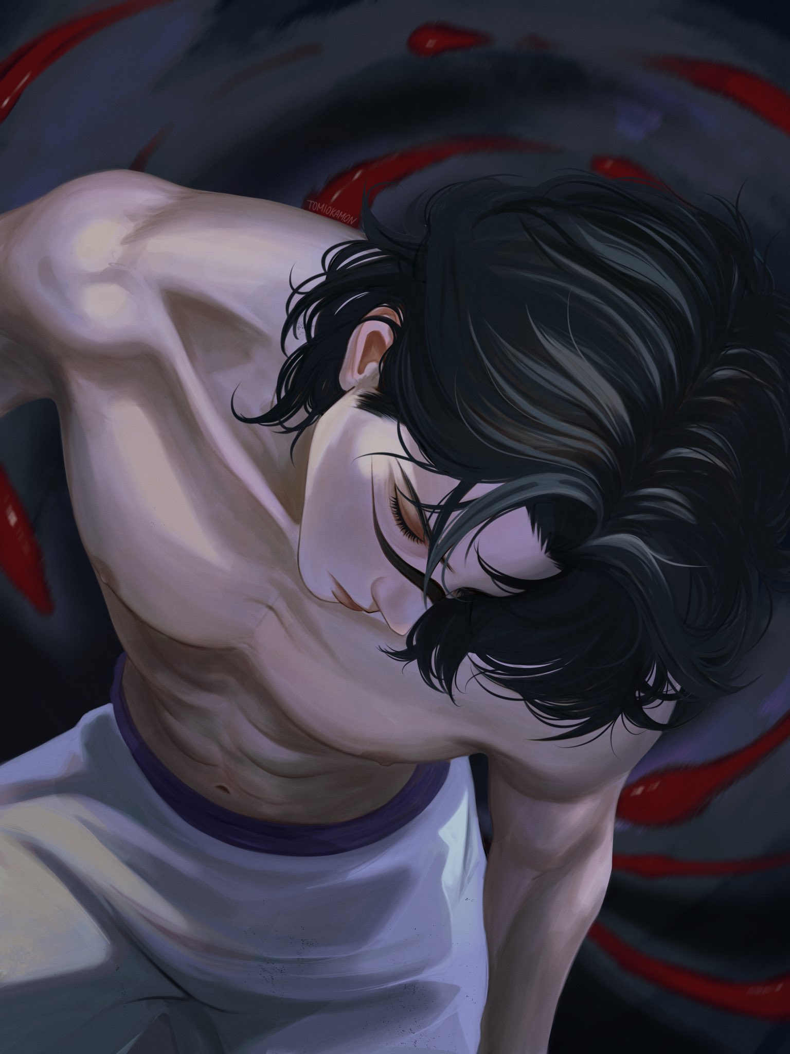 1boyabsblack hairclosed eyescollarboneeyelashesfacial tattoofrom abovehair downmale focusnavelnipplespectoralsshort hairsolotattootomiokamontopless male