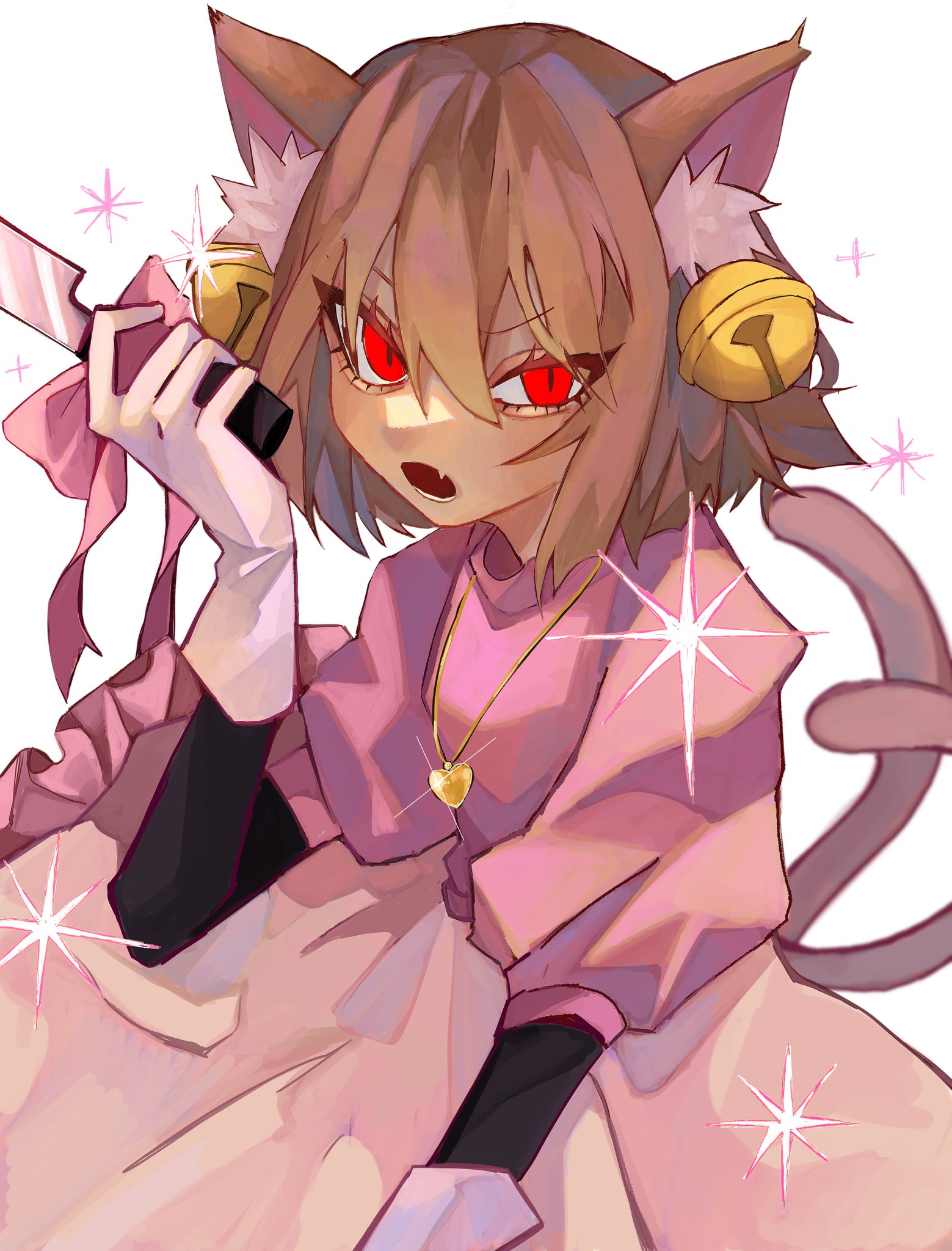 animal earsbellbrown haircat earscat tailcosplaygold necklacehair ornamentjewelryknifemad mew mew (cosplay)necklacered eyestail