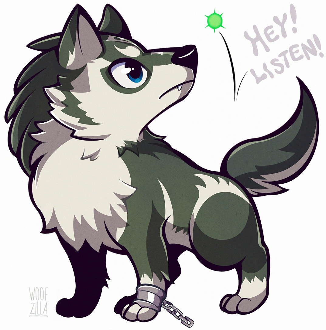 animal focusblue eyesclosed mouthcrossovercuffsenglish textfangfull bodyno humansshacklessimple backgroundwolf