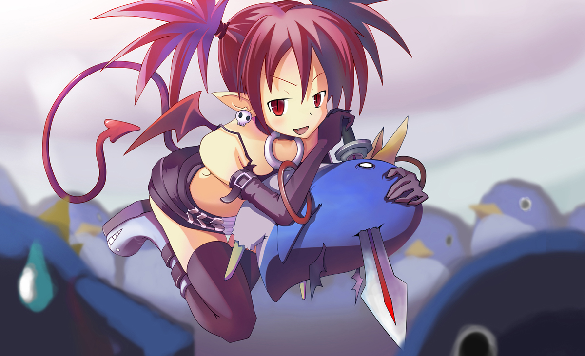 bat wingsbraceletdemon girlearringsjewelrypointy earsred eyesred hairsoloswordtailthighhighsweaponwingszettai ryouiki