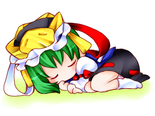 1girlchibifemale focusfull bodygreen hairhatlyingqvgashort hairsleepingsockssolowhite background
