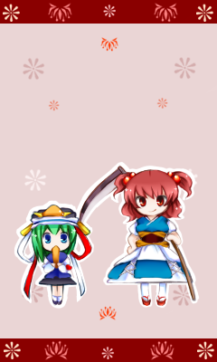 2girlsblue eyeschibifemale focusfull bodygreen hairhair bobbleshair ornamenthatmultiple girlsred eyesred hairrod of remorsescytheshort hairstandingtwintailstwo side up