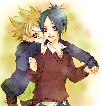 00s2boysblonde hairblue hairblushheterochromiamale focusmultiple boysscarscar on facescar on noseshort hairsmilesweater