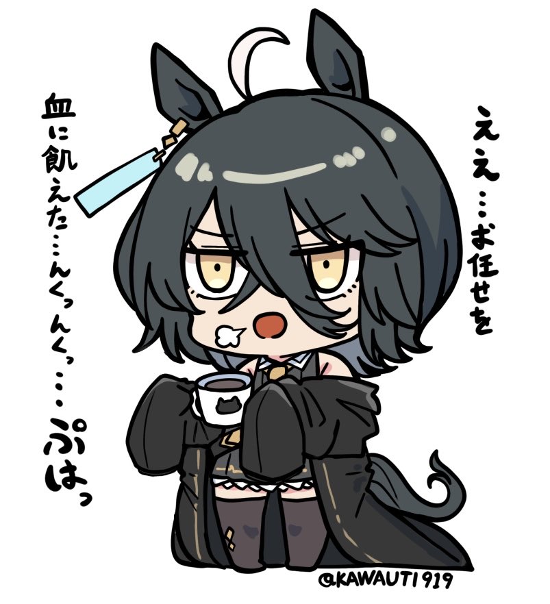1girlahogealternate hair lengthalternate hairstyleanimal earsbare shouldersblack hairblack jacketblack shirtblack skirtbrown eyesbrown thighhighschibicollared shirtcupfull bodyhair between eyesholdingholding cuphorse earshorse girlhorse tailjacketlong sleevesmulticolored hairno shoesoff shoulderopen clothesopen jacketpleated skirtshirtsimple backgroundskirtsleevelesssleeveless shirtsleeves past fingerssleeves past wristssolostandingtailthighhighstwitter usernametwo-tone hairv-shaped eyebrowswhite backgroundwhite hair
