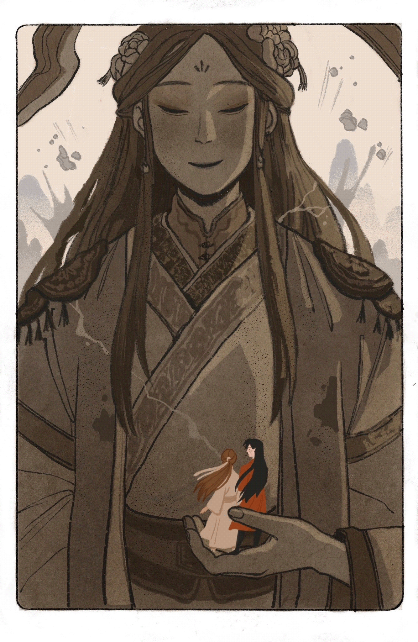 2boysblack hairborderbrown hairchinese clothesclosed eyesclosed mouthearringsfacial markfacing viewerflowerforehead markfrom behindhair bunhair flowerhair ornamenthair ribbonhanfujewelrylayered clotheslong hairlong sleevesmale focusmultiple boysornate clothesoutdoorsparted bangsred hanfuribbonsingle hair bunsmilestanding on another's handstatuevery long hairwhite borderwhite hanfuwhite ribbonwide sleeves