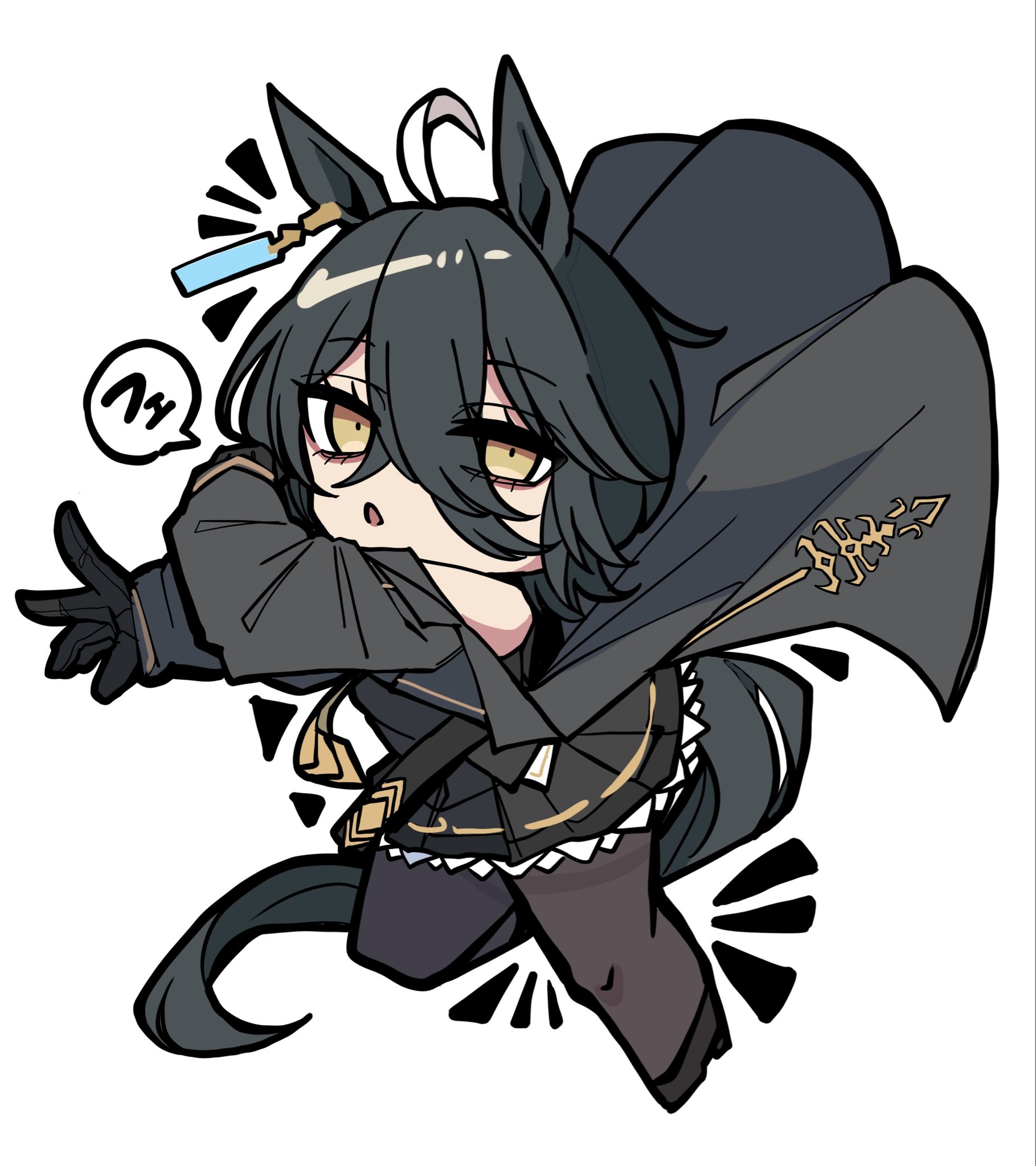 1girlahogeanimal earsbare shouldersblack glovesblack hairblack jacketblack shirtblack shoesblack skirtbrown eyesbrown pantyhosechibifull bodygloveshair between eyeshigh heelshorse earshorse girlhorse tailjacketlooking at viewermulticolored hairnotice linesoff shoulderopen clothesopen jacketpantyhoseparted lipspleated skirtshirtshoessimple backgroundskirtsleevelesssleeveless shirtsolotailtwo-tone hairwhite backgroundwhite hair