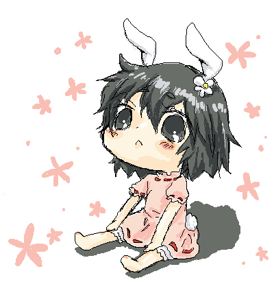 1girlanimal earsbarefootblack hairchibifemale focusfull bodyrabbit earsshort hairsittingsolowhite background