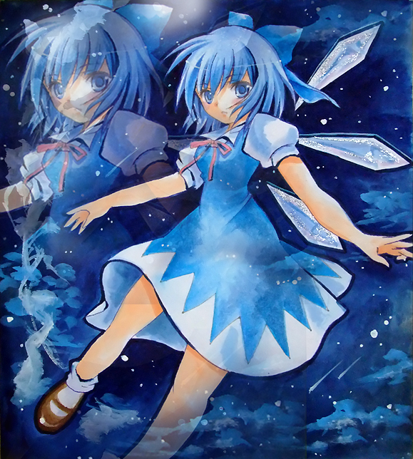 1girlblue eyesblue hairdressfemale focushair ribbonmatching hair/eyesribbonsockssolowingszoom layer