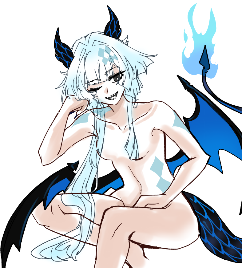 :d1girlalternate eye coloralternate speciesblack eyesblack hornsblack tailblue fireblue hairblue wingsbody markingsbreastscollarbonecompletely nudecowboy shotdiamond (shape)diamond-shaped pupilsdragon girldragon hornsdragon tailelbow restfireflame-tipped tailhair intakeshair over breastshornsinvisible chairjellyfish cutlinea albalong hairno nipplesnudeone eye closedopen mouthpatterned hairsee-through bodysharp teethsimple backgroundsittingsmall breastssmilesolosymbol-shaped pupilstailtail raisedteethvery long hairwhite backgroundwings