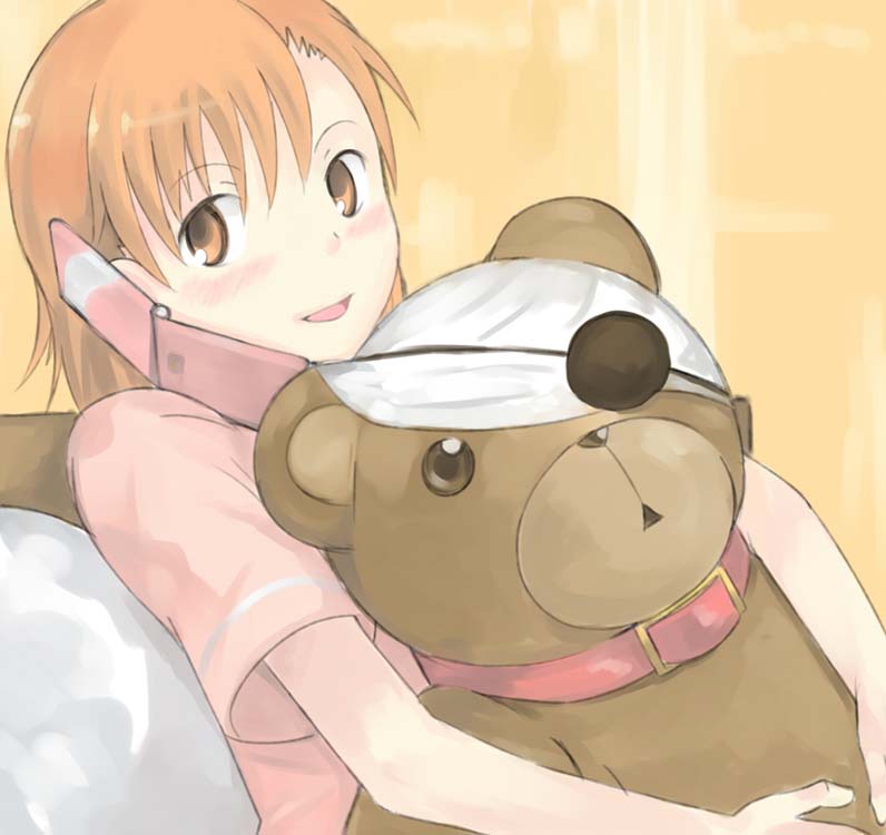 :d00sblushbrown eyesbrown haircellphoneeyepatchopen mouthphonesmilestuffed animalstuffed toyteddy bear